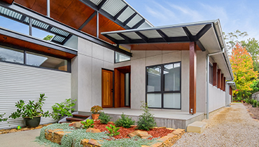 For the builder, Jeff Bubeck of Downs Designer Homes, all the spacing of the Barestone sheets was carefully planned to achieve clean lines. “With a steep block at street level… the house is visible on three sides, plus the roof, so whatever you build has to have clean lines.”